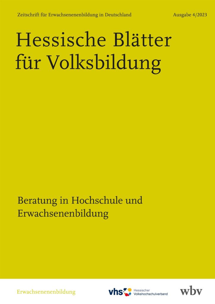 Das aktuelle Heft 4/2023 der Hessischen Blätter für Volksbildung diskutiert verschiedene Facetten von Beratung in Hochschule und Erwachsenenbildung und stellt konkrete Praxisprojekte vor.